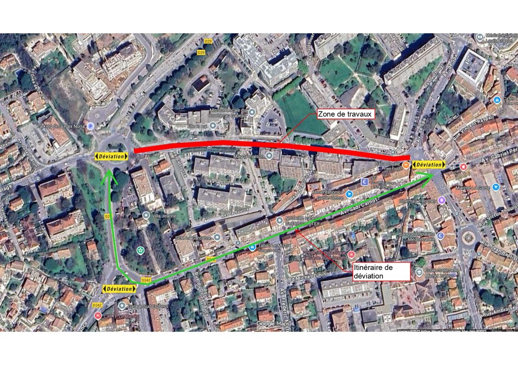 ⚠️ Un itinéraire de déviation sera signalé, via l'avenue Sadi Carnot.