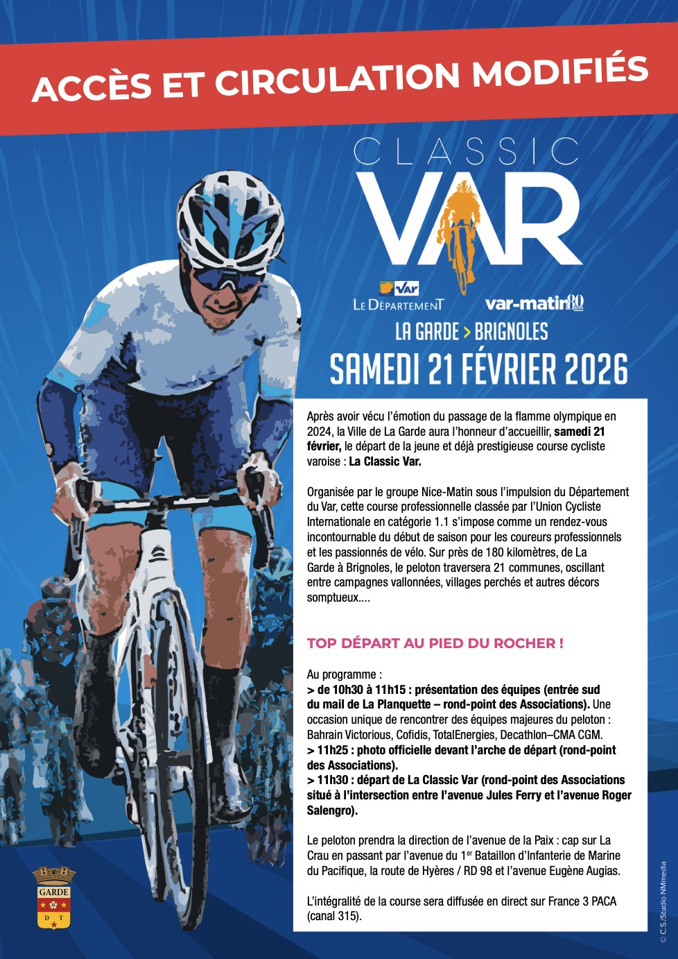 Après avoir vécu l’émotion du passage de la flamme olympique en 2024, la Ville de La Garde aura l’honneur d’accueillir, samedi 21 février, le départ de la jeune et déjà prestigieuse course cycliste varoise : La Classic Var.